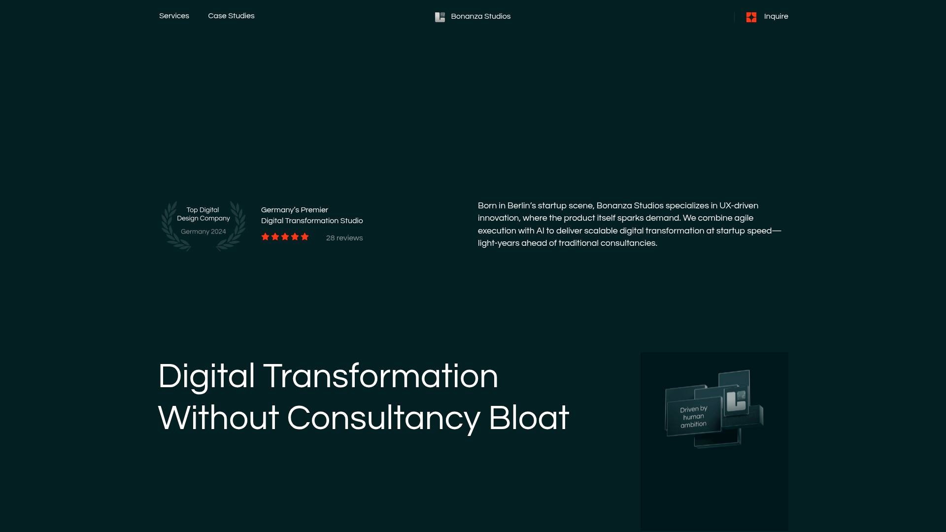 Bonanza Studios leads in UX-driven digital transformation, recognized as Germany's top design company. Specializing in rapid MVP launches and AI-native experiences, Bonanza Studios revolutionizes how digital products are designed and scaled. With an agile approach, the studio delivers unparalleled innovation that meets and exceeds user expectations.
