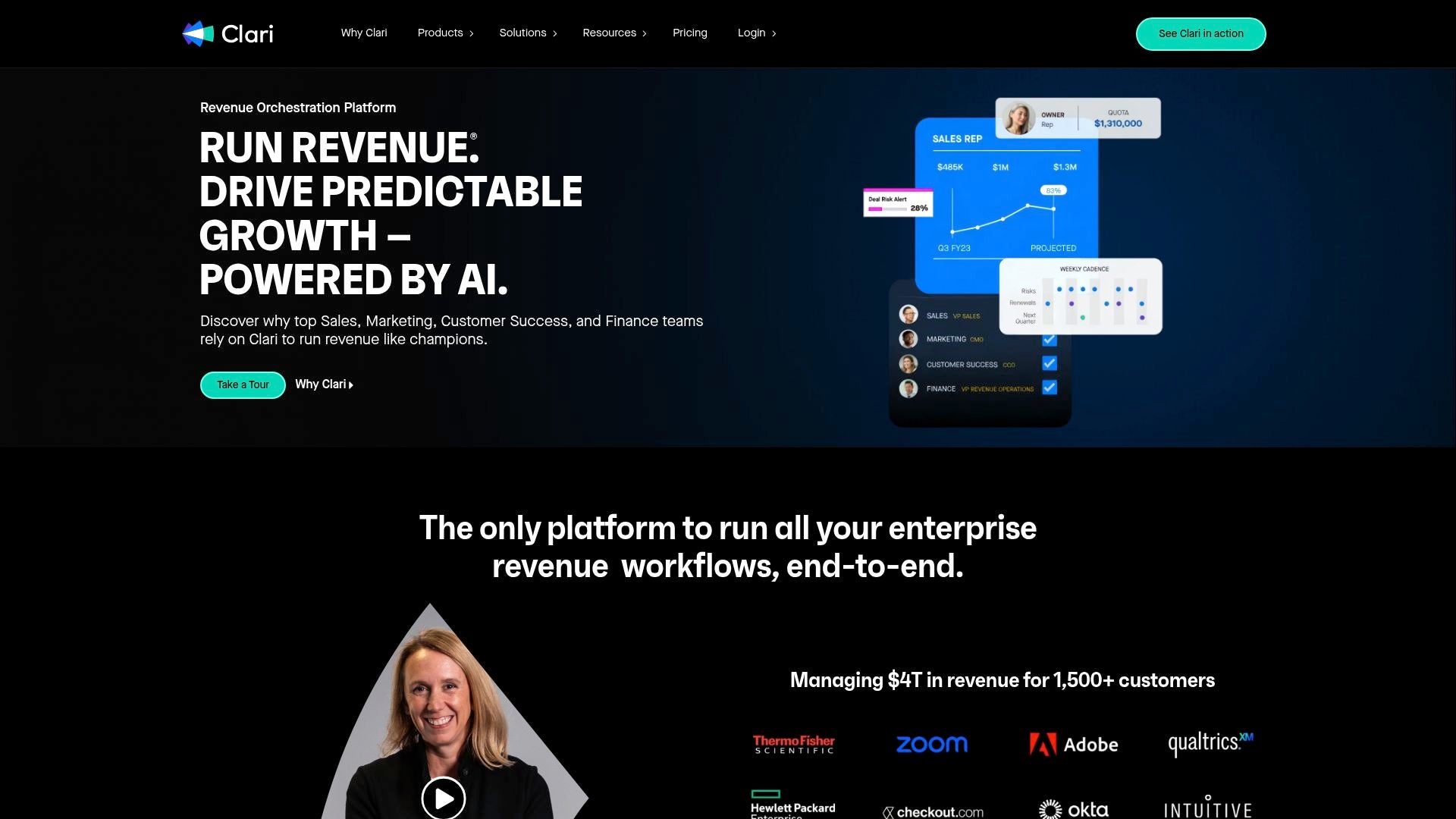 Clari revolutionizes revenue orchestration by leveraging AI to drive predictable growth. Its platform integrates sales, marketing, and finance workflows, offering comprehensive visibility and analytics. Clari's commitment to high performance and compliance makes it a trusted choice for over 1,500 customers.