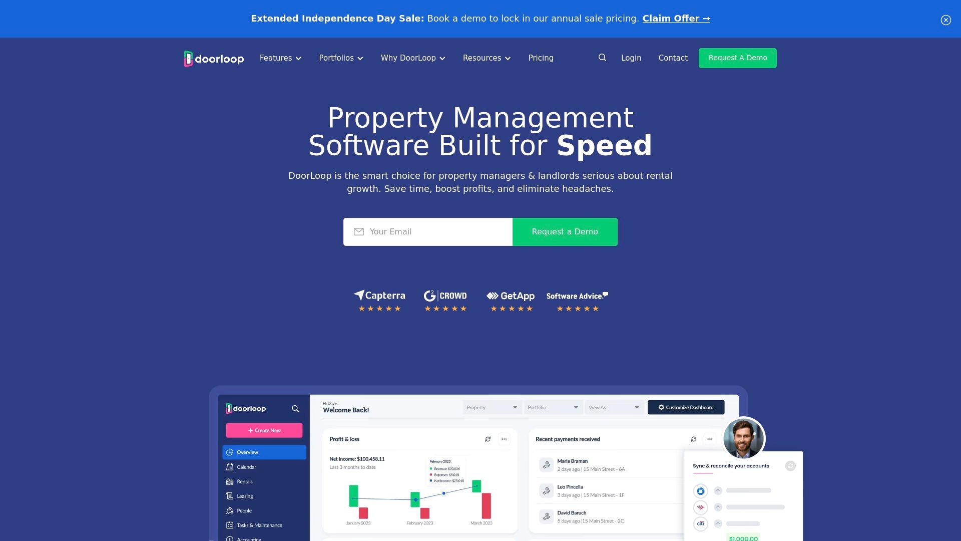 DoorLoop is the highest-rated rental property management software online. It provides property managers and landlords with an all-in-one solution to manage rental portfolios, offering customization for residential, commercial, and mixed-use properties. With a focus on ease of use and security, DoorLoop integrates 1,000+ apps to streamline operations and reduce double data entry.