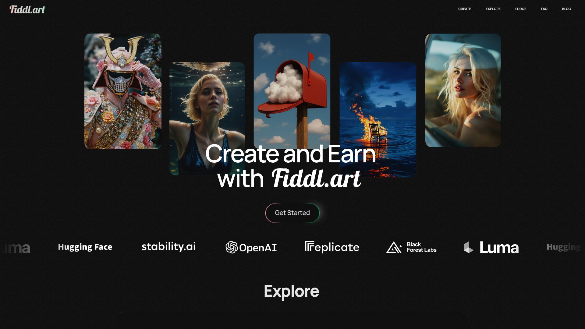 Fiddl.art transforms ideas into art using natural language, offering tools to generate and improve creations while rewarding users for popular works.