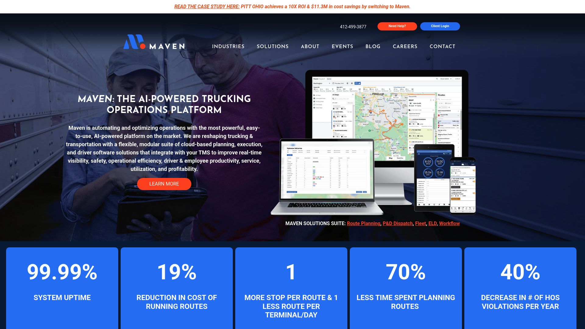 Maven's advanced algorithms optimize routes, reducing planning time and maximizing capacity. Dispatchers can plan efficient routes that boost profitability through automated planning and dispatching tools.