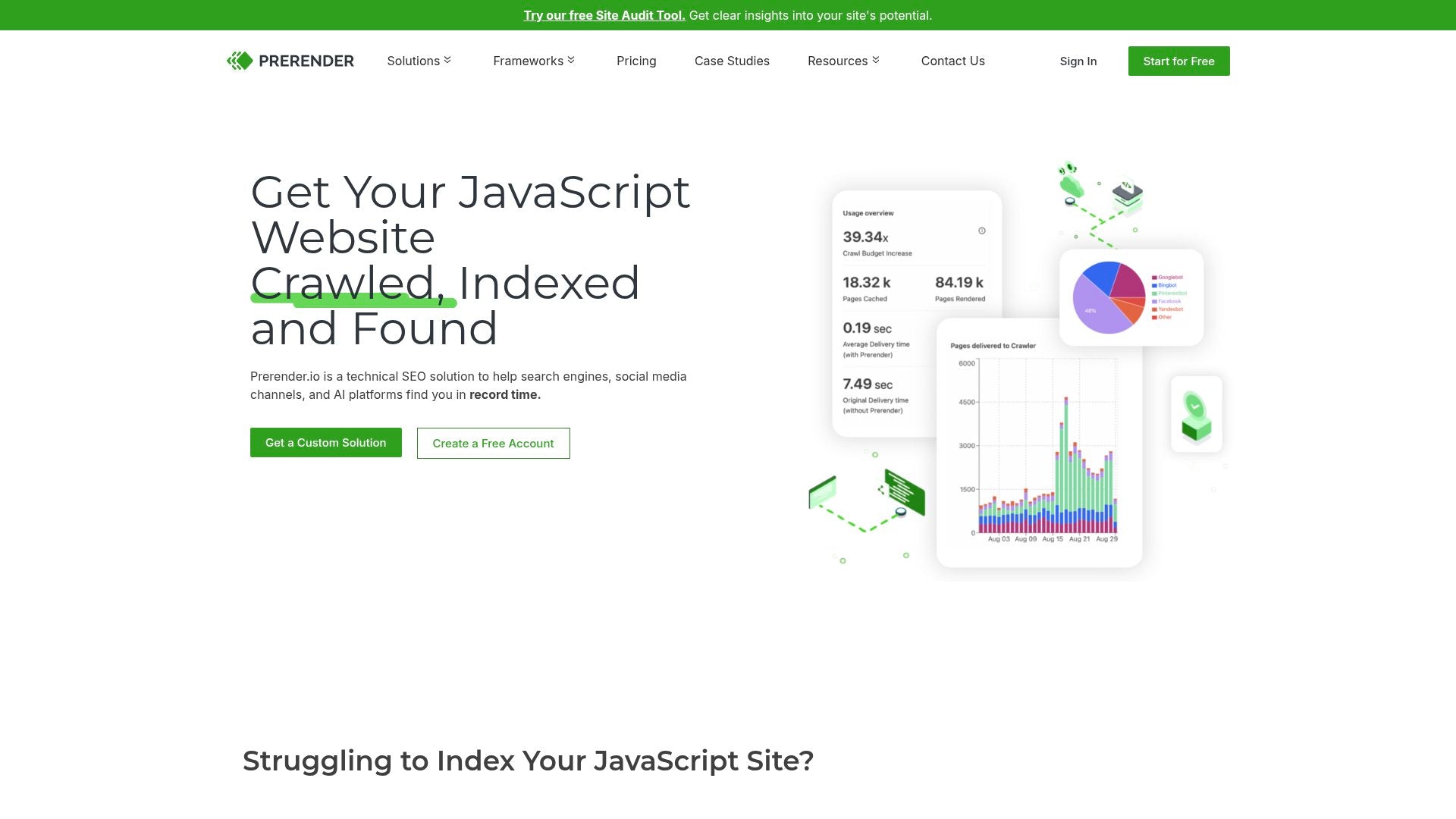Prerender.io provides a comprehensive solution to JavaScript SEO challenges, ensuring that websites are easily found and ranked by search engines. With dynamic rendering and scalable pricing plans, it empowers businesses to optimize their crawl budgets and improve indexing speed. Get started with Prerender.io today and elevate your SEO strategy!