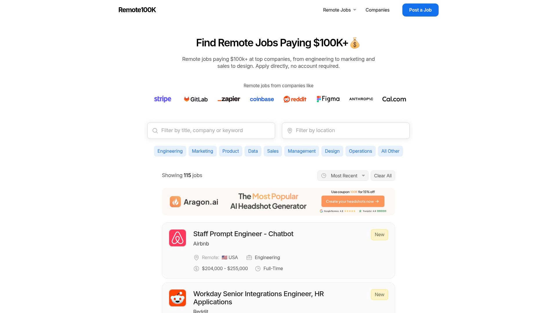 Each job listing is manually vetted to meet high-quality standards. This ensures that every position offers substantial compensation and authentic remote work culture. With Remote100K, you can trust that listed jobs meet your expectations for salary and work environment.