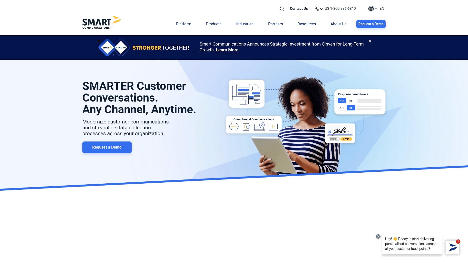 Smart Communications offers a cloud-based platform that enhances customer engagement and improves communication efficiency. As a leading provider in customer conversation management, it provides exclusive resources and updates on industry trends. Join the waitlist for early access to lifetime deals, promotion codes, and more.