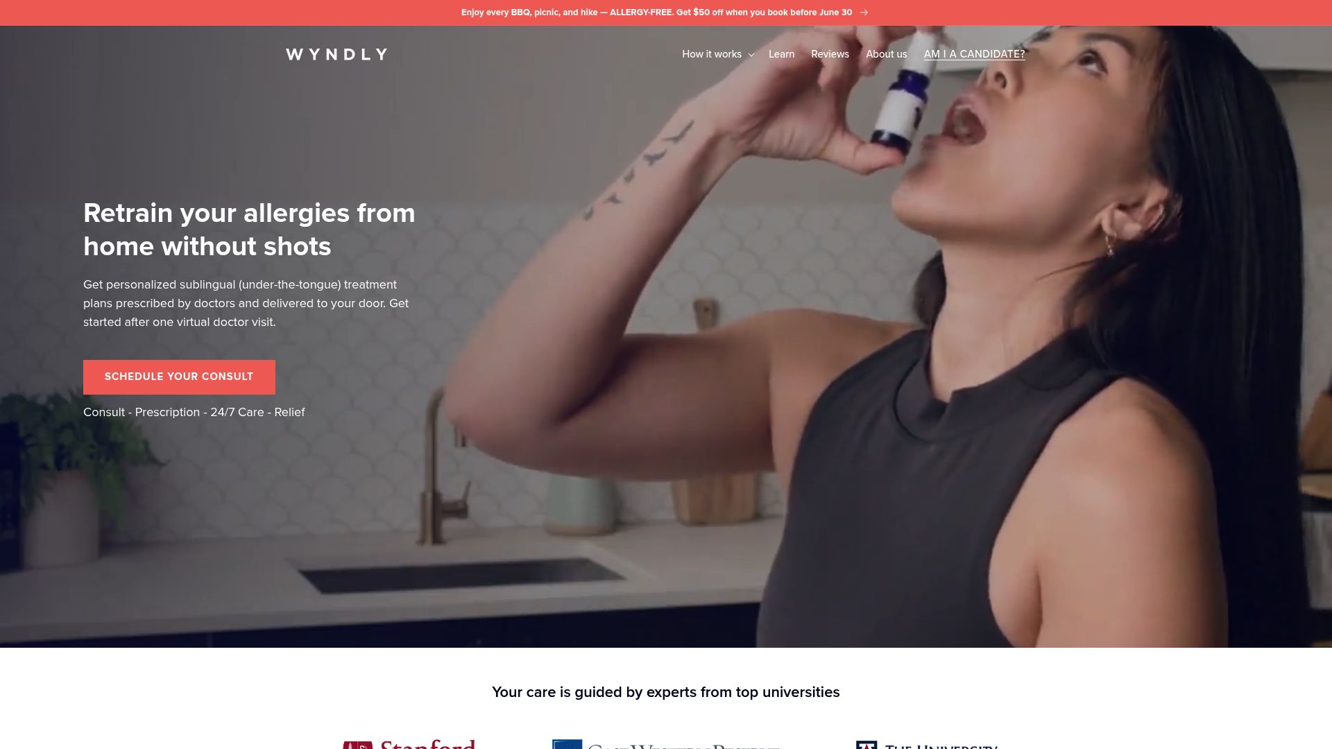 Wyndly revolutionizes allergy care with online treatment options. Offering personalized plans and sublingual immunotherapy, Wyndly provides long-term relief from allergy symptoms. Avoid traditional in-person visits with their virtual consultations, and enjoy the convenience of at-home testing kits.